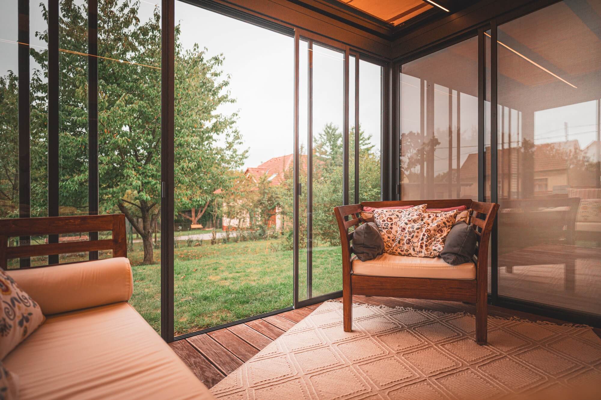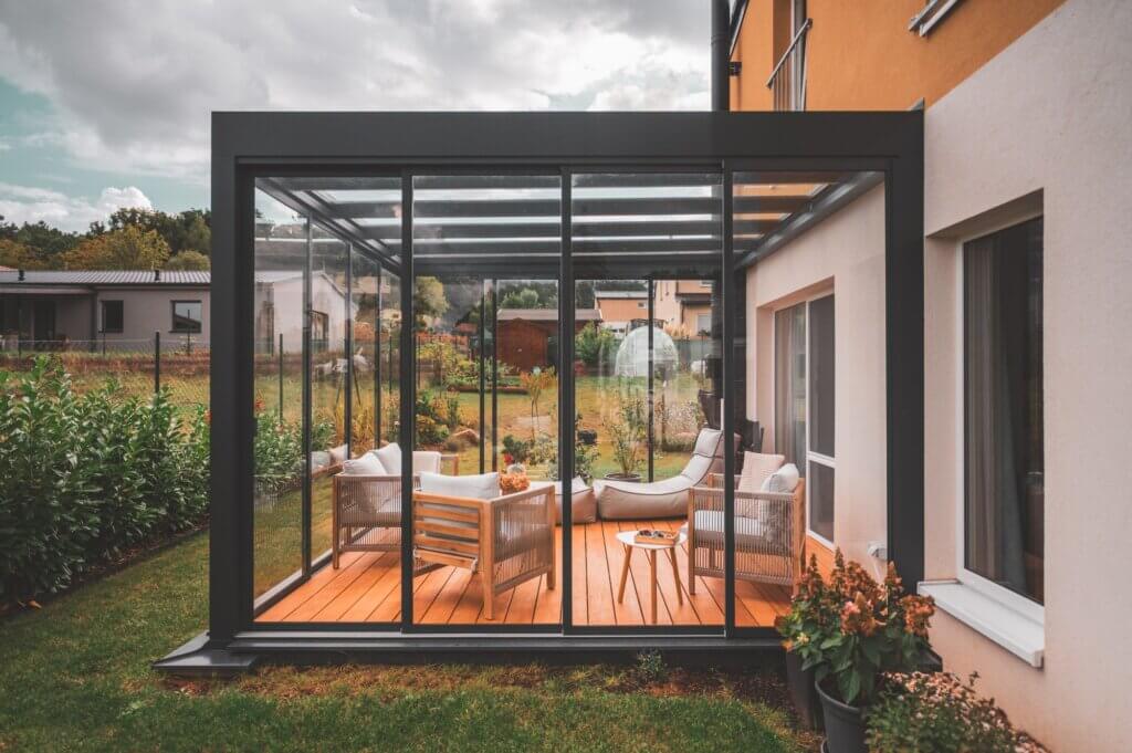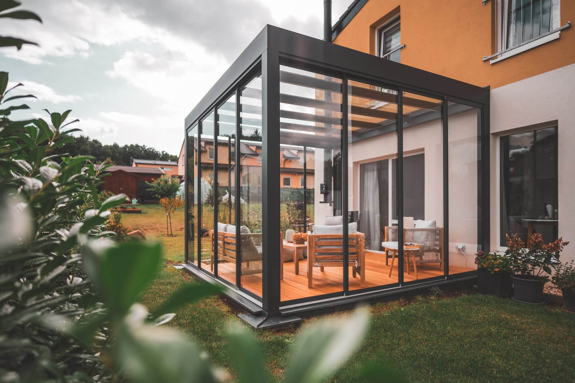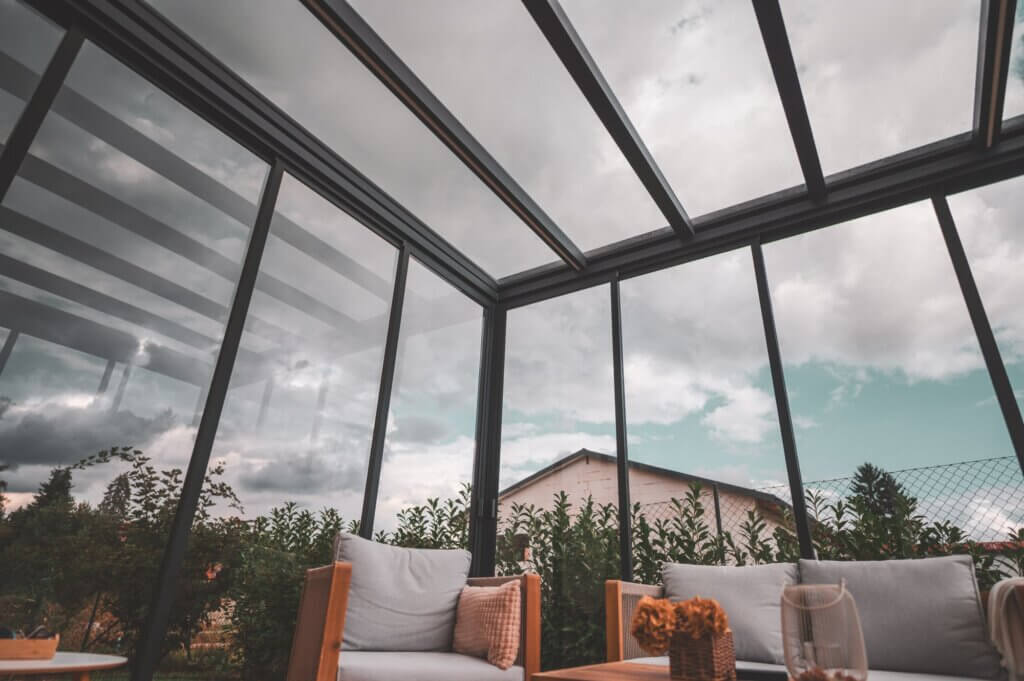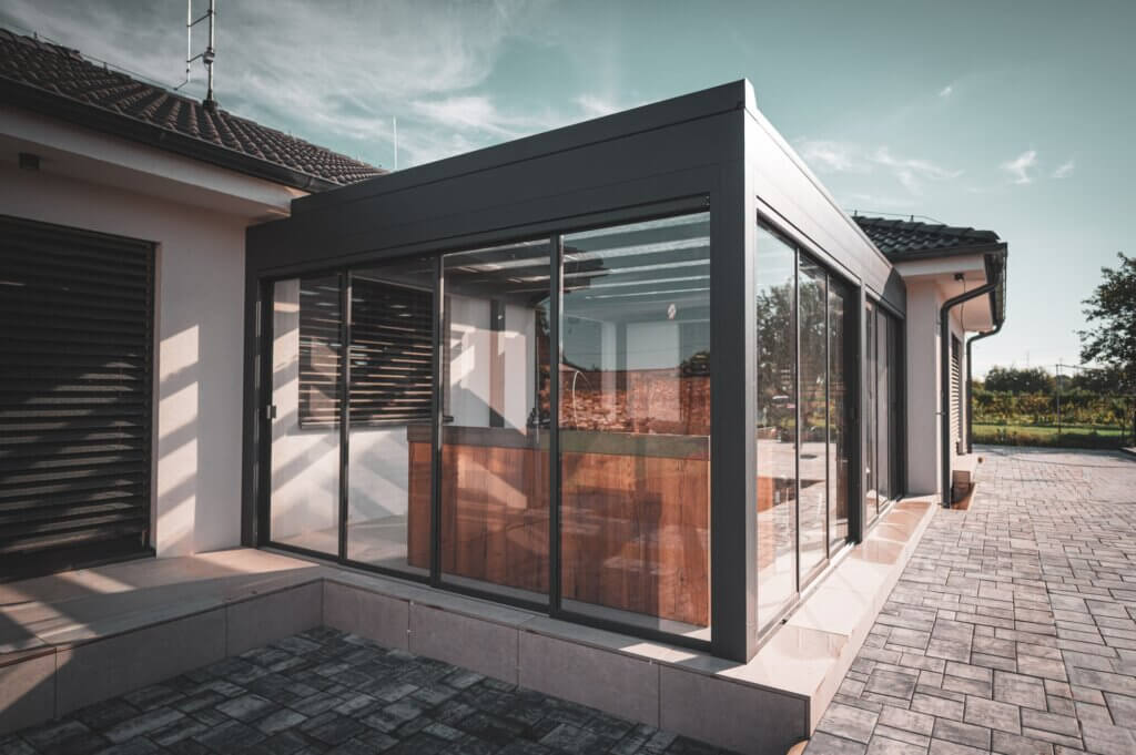 The Meridiem Glass pergola is the first product of its kind on our market to feature a completely flat structure with a glazed roof. The roofing is sloped within the structure, giving the pergola a unique modern design combined with the charm of cubist shapes. Naturally, the pergola includes an integrated gutter system that directs rainwater into the pergola’s support beam. Thanks to its robust construction, the pergola can withstand heavy loads, ensuring year-round use. An integrated roof blind and side sliding glazing are highly desirable additions to the Meridiem Glass pergola, while LED lighting and infrared heaters can also be valuable enhancements.