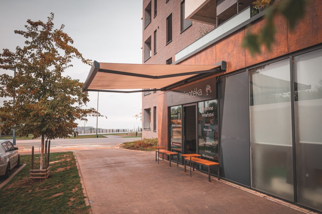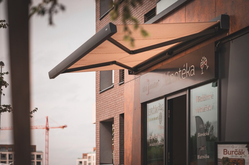 Cassette awnings from our range are a premium category of awnings with articulated arms. When closed, both the awning and the articulated arms are fully retracted into the cassette, providing complete protection from the elements. Cassette awnings are therefore ideal for use on walls without a roof or on buildings exposed to weather conditions. The appearance of the awning can be chosen from over 200 RAL colors and 1,000 fabrics, making it a perfect fit for any building design. The fabrics are weather-resistant and repel dirt. The awnings are typically operated by a radio motor, and upon request, they can be equipped with control units, sensors, or hand-crank operation.